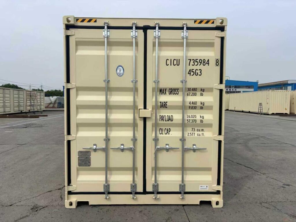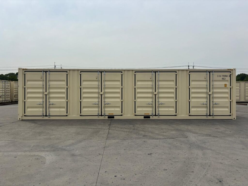 Mūsų parduodamas 12 metrų (40’HC OS) jūrinis konteineris puikiai tinka ne tik transportavimui, bet ir sandėliavimui. Šis konteineris yra ypatingas – jis atsidaro ne tik priekyje dvivėrėmis durimis, bet taip pat galima pilnai atidaryti visą šoninę sieną. Šoninėje sienoje atidaromos net keturios atskiros dvivėrės durys! Tai labai palengvina krovinių pakrovimą ir iškrovimą ir puikiai tinka sandėliavimo paskirčiai įvairių krovinių ar daiktų sandėliavimui. Kaip klientai sako, labai patogu įvežti ir išvežti, prižiūrėti sandėliuojamus krovinius. Taip pat pabrėžiamas saugumas – kiekvienos iš penkių konteinerio durų yra su LockBox – gamykline centrinės spynos apsauga. Aukštai sumontuotos atidarymo rankenos labai palengvina durų atidarymą ir uždarymą- nereikia žemai lenktis. Sandėliuojamų prekių/ daiktų vėdinimą užtikrina 4 ventiliacinės angos.