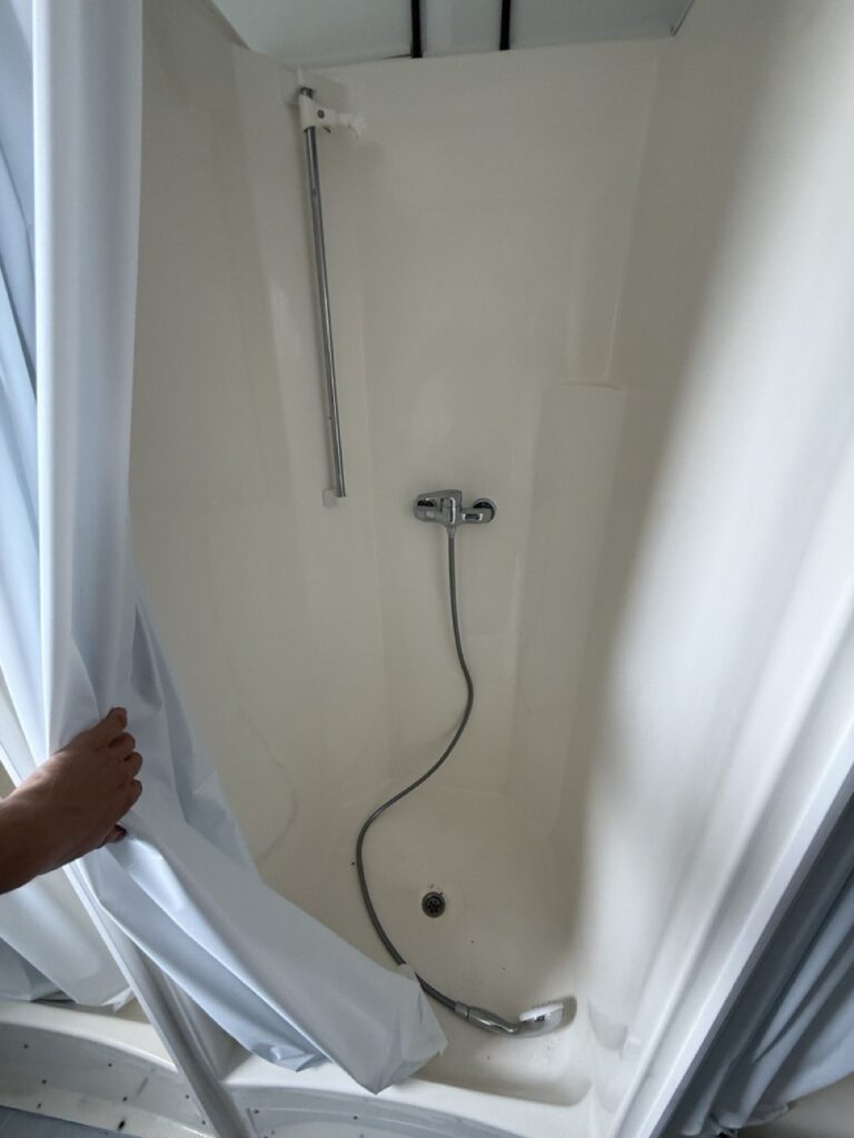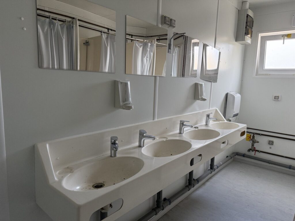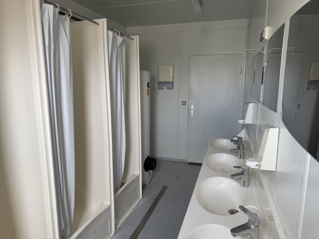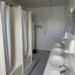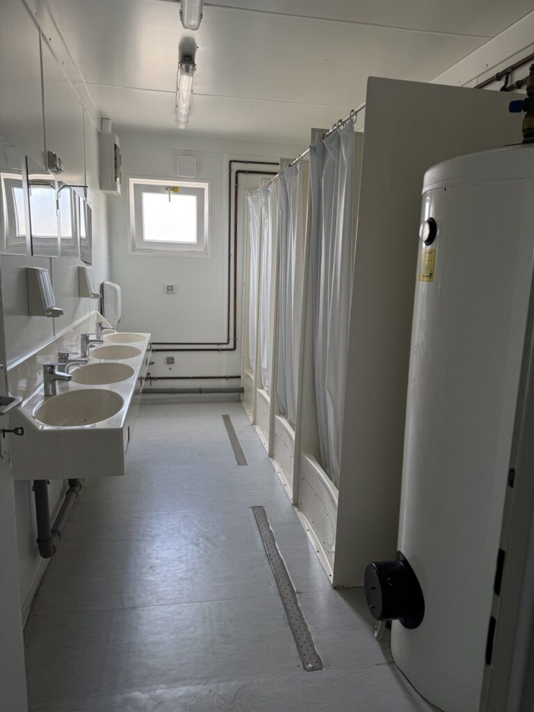 – Uždara dušinė su 4 dušo kabinomis, 4 praustuvais, šildytuvu, el. ventiliacija, neskaidriu varstomu langu.
