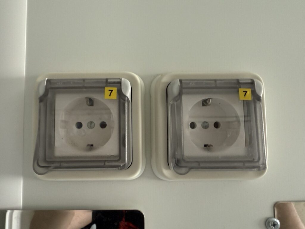 – 6 x rozetės su apsauginiais dangteliais nuo dregmės;
