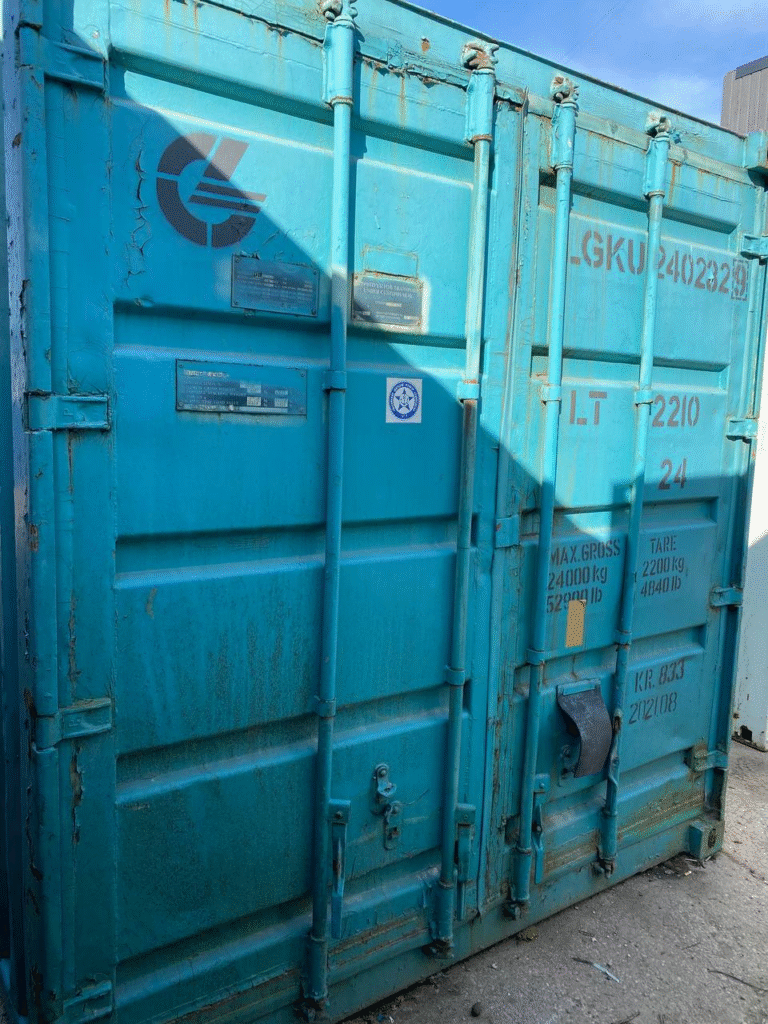 Mūsų parduodamas turkio spalvos (melsvai žalias) 6m (20’DC) naudotas jūrinis konteineris – saugi, patvari ir patikima konstrukcija įvairaus tipo krovinių gabenimui. Šis standartinio dydžio konteineris labiausiai tinka neaukštiems kroviniams, tokiems kaip drabužiai, batai, skalbimo mašinos, žemesni baldai ar sodo įranga.
