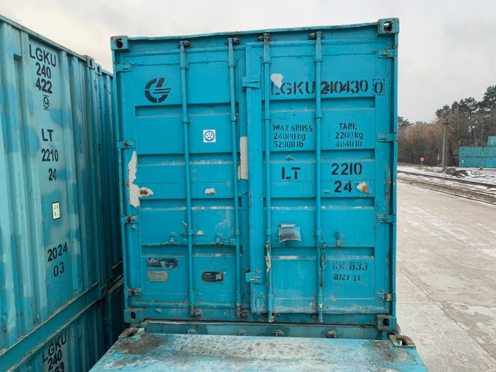 Mūsų parduodamas turkio spalvos (melsvai žalias) 6m (20’DC) naudotas jūrinis konteineris – saugi, patvari ir patikima konstrukcija įvairaus tipo krovinių gabenimui. Šis standartinio dydžio konteineris labiausiai tinka neaukštiems kroviniams, tokiems kaip drabužiai, batai, skalbimo mašinos, žemesni baldai ar sodo įranga.