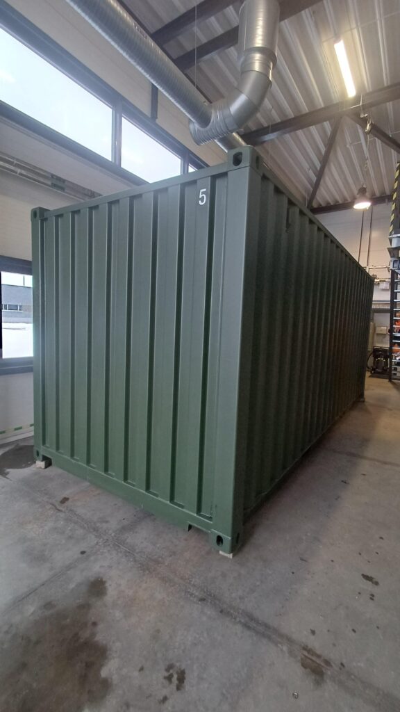6m (20’DC) tamsios alyvuogės RAL6007 spalvosjūrinis konteineris turi šiuos privalumus: