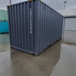 6 metrų pilkas jūrinis konteineris pagamintas iš tvirto plieno konstrukcijos, miltelinis dažymas indikuoja atsparumą korozijai, o tinkamai prižiūrimas gali tarnauti ne vieną dešimtmetį.